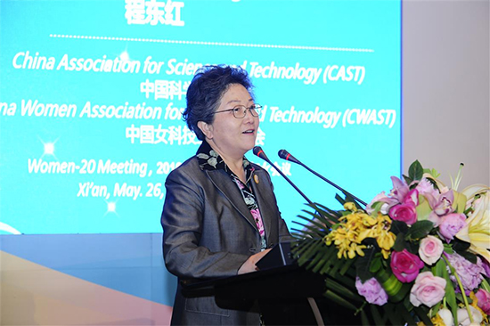8、中国科学技术协会副主席、中国女科技工作者协会常务副会长程东红在全体会议上发言