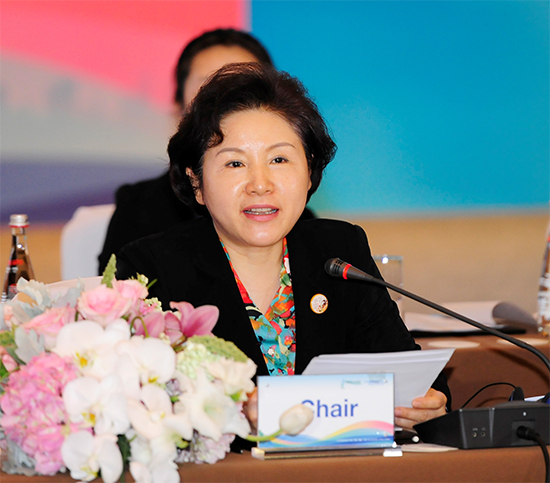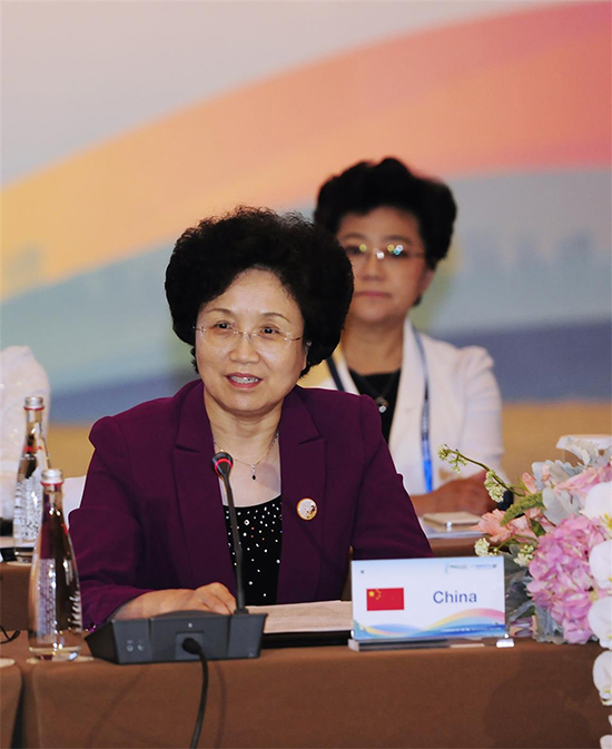 国务院妇女儿童工作委员会副主任,全国妇联副主席、书记处第一书记宋秀岩主持了高级别会议并在发言中表示,中国始终坚持男女平等的宪法原则,将男女平等作为促进国家社会发展的一项基本国策。宋秀岩重点从积极完善促进性别平等的法律政策,采取切实行动促进妇女创业就业,加强能力建设鼓励妇女创新发展等三个方面,介绍了中国在推动妇女平等参与经济发展、平等分享发展成果等方面所做的努力及中国妇女参与经济主要措施。